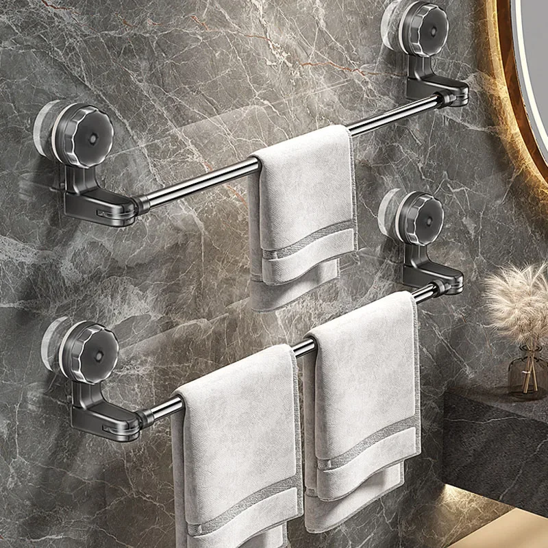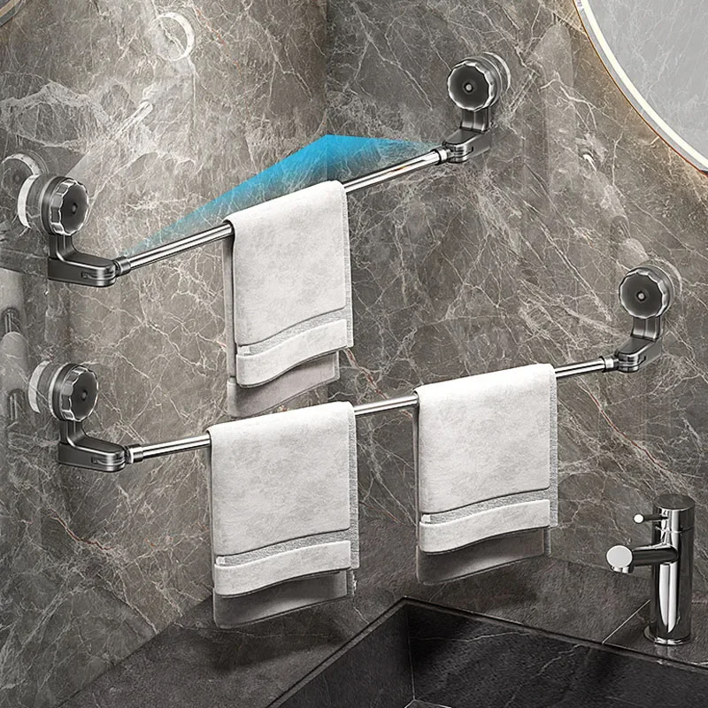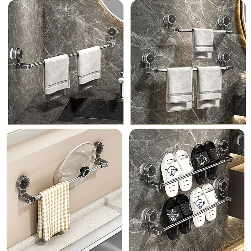Retractable Suction Cup Wall Towel Rack no drilling Single Rod Towel Holder Kitchen Bathroom Organiser Shelf Accessories